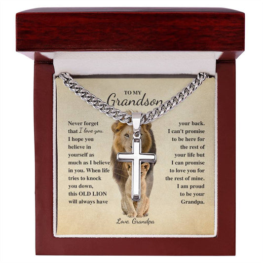 To Grandson Love Grandpa | Old Lion | Artisan Cross Necklace