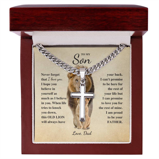 To Son Love Dad | Old Lion | Artisan Cross with Cuban Link Chain