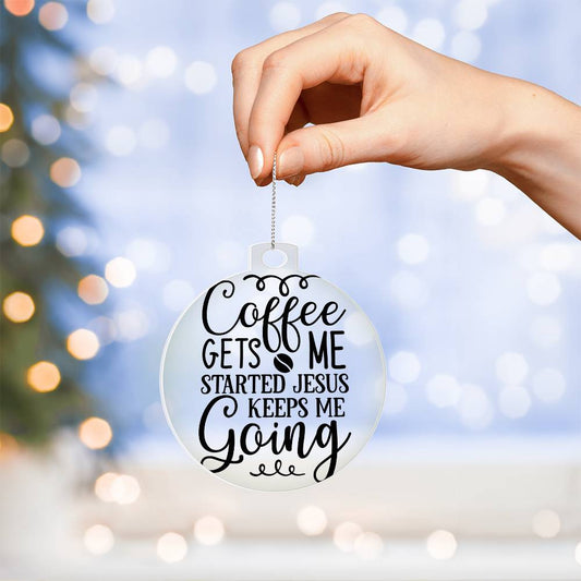 Coffee Gets Me Started Jesus Keeps Me Going Ornament