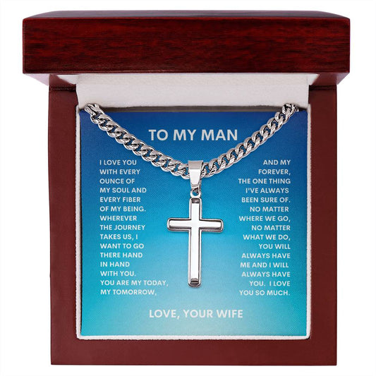 To My Man from Wife | I love you | Artisan Cross Cuban Link Necklace