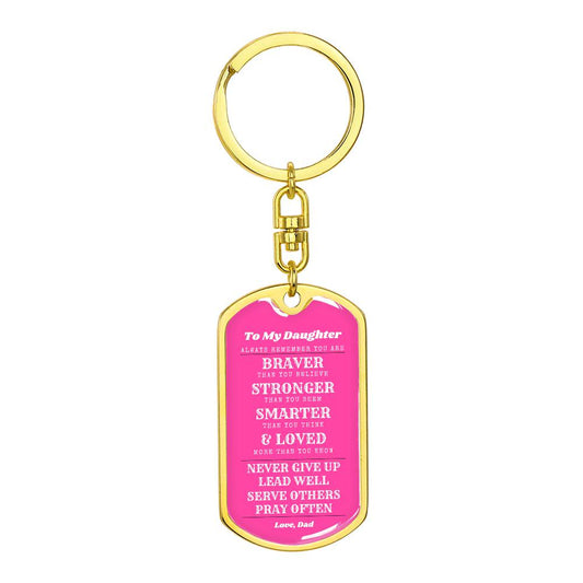 To Daughter From Dad | Always Remember | Dog Tag with Swivel Keychain (Pink)