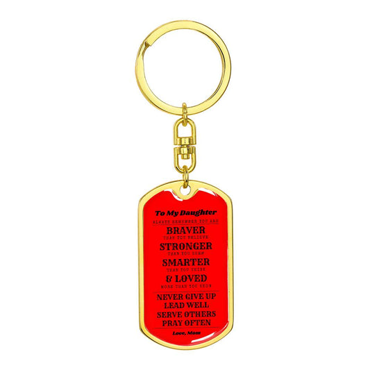 To Daughter From Mom | Always Remember | Dog Tag with Swivel Keychain (Red)