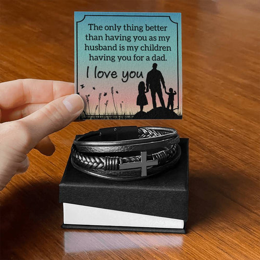To Husband from Wife | The only thing | Cross Leather Bracelet
